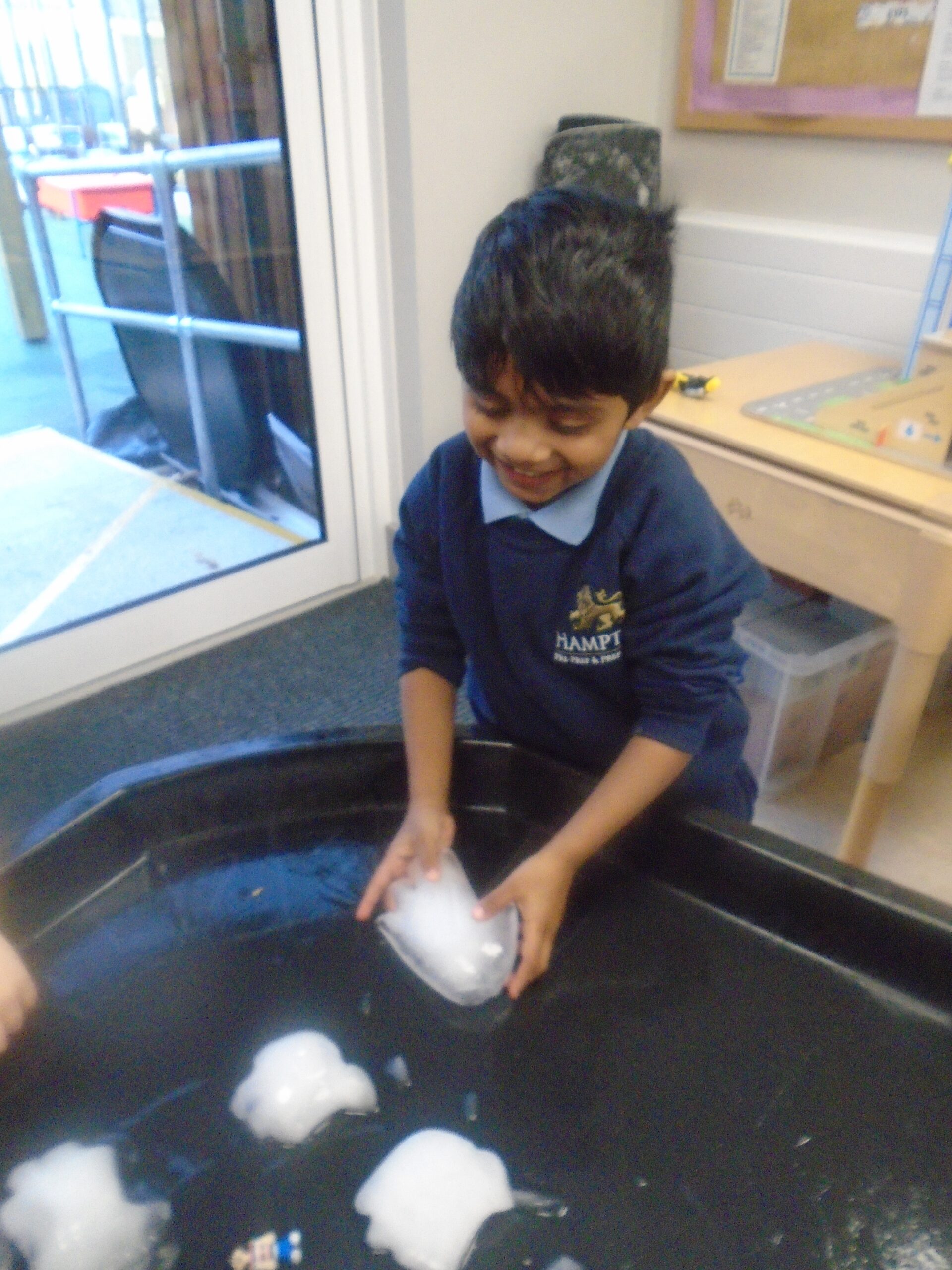 We also had a brilliant time playing in our ‘Winter’ small world play, using polystyrene balls and glitter to pretend snow alongside the polar animals.
