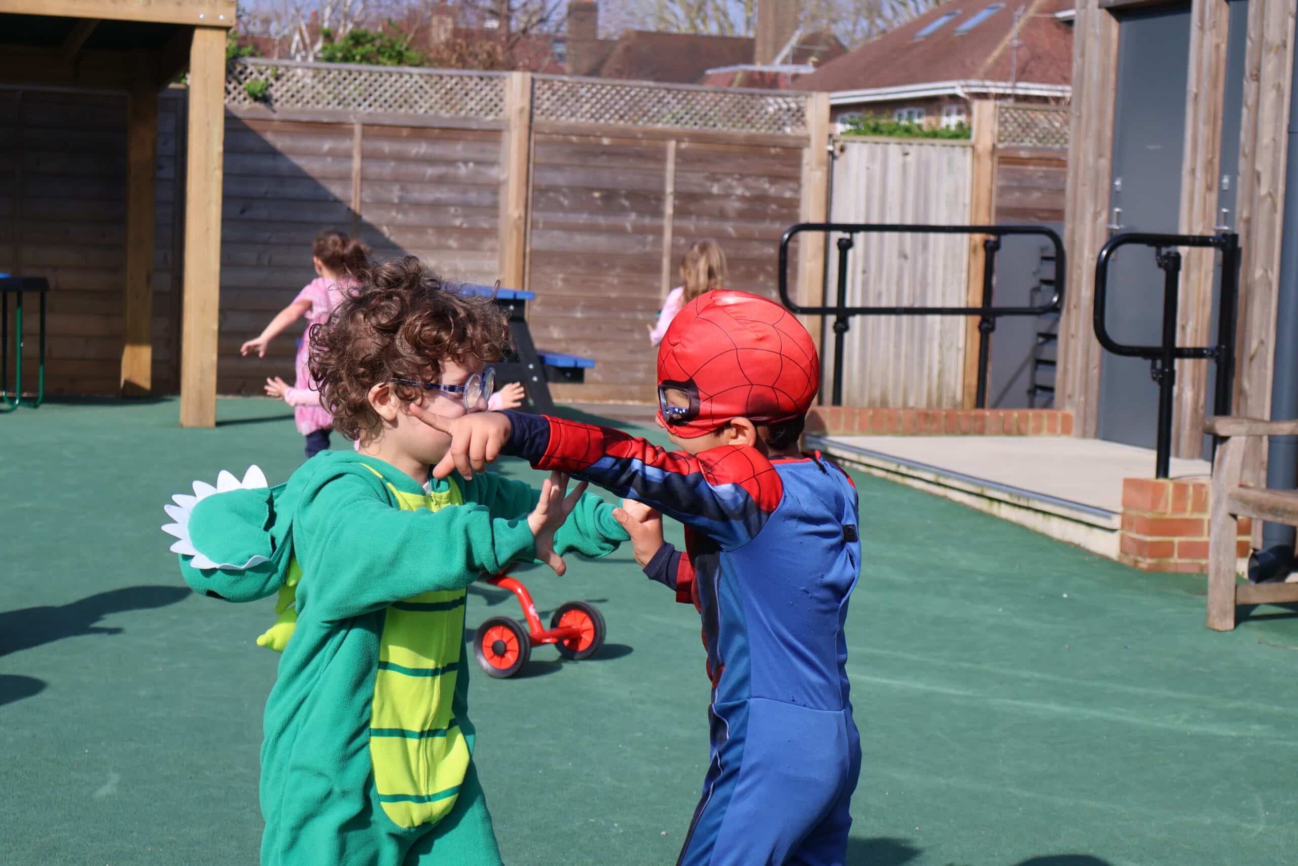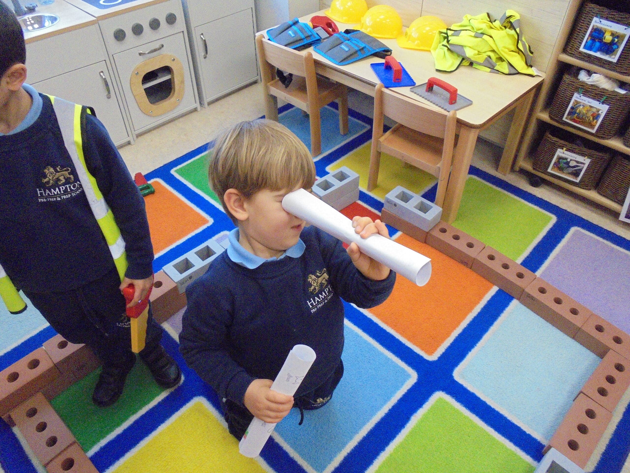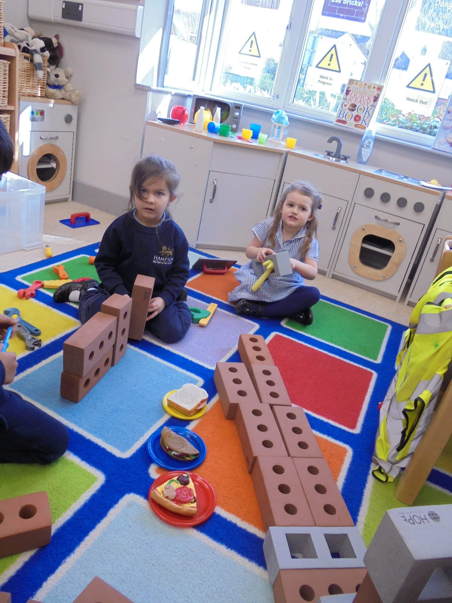 The children loved creating their own pigs out of clay. They shaped the bodies into cylinders, added nostrils with matchsticks, stuck on googly eyes and finished them off with curly pink pipecleaner tails. Once the models had dried, we painted them carefully. We also practised our cutting skills by making pig puppets using lolly sticks and Sellotape, which we later used for storytelling. Reenacting the tale with character masks was a highlight — especially joining in with the famous line, “I’ll huff, and I’ll puff, and I’ll blow your house down!” Using storysack puppets, sticks, wooden bricks and straw, the children worked together to bring the story to life.