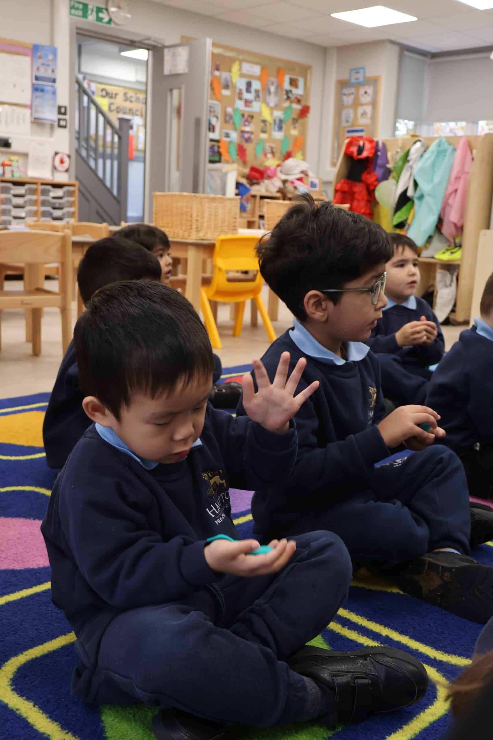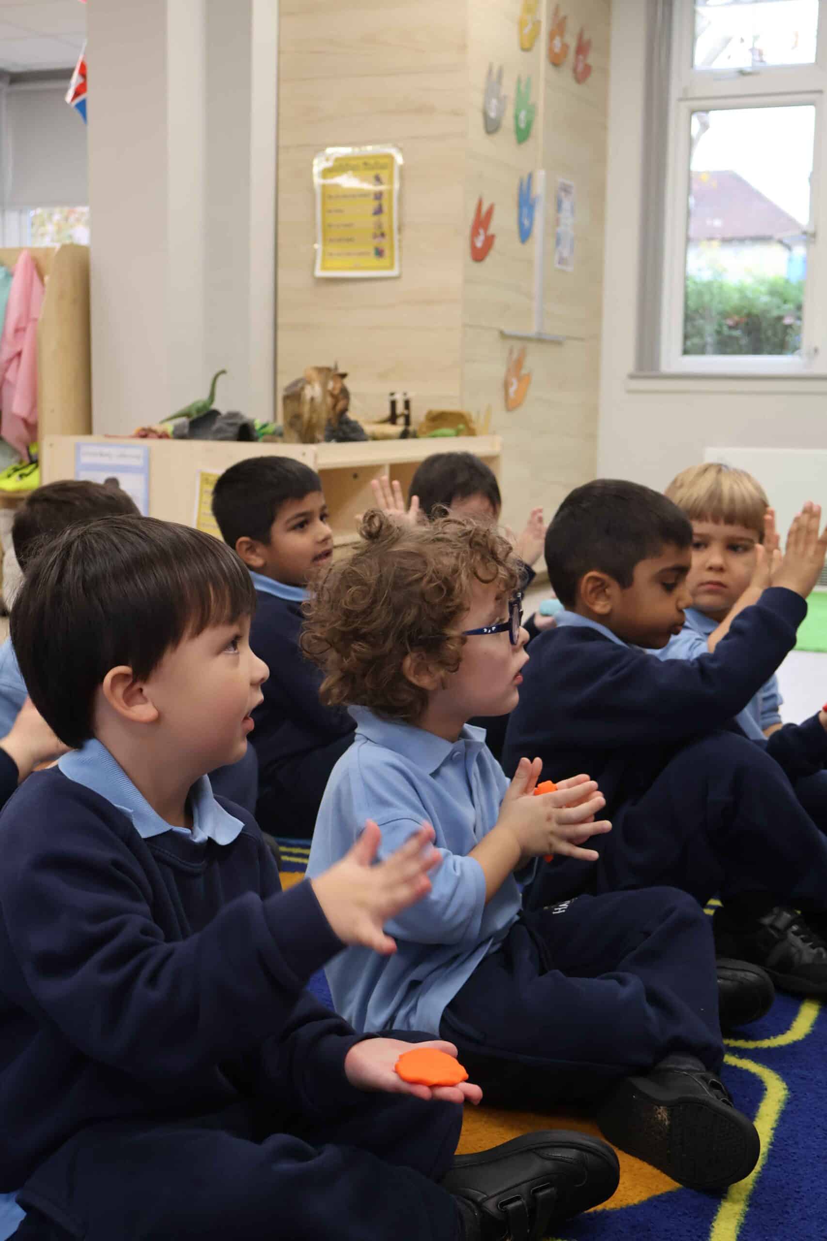 We also turned our attention to Guy Fawkes and Bonfire Night. We learned that Guy Fawkes didn’t follow our Golden Rules, and we used this as a springboard to talk about kindness and making good choices. The children worked collaboratively to create a firework-themed background using flicked paint, and designed their own colourful rockets using paint sticks. We explored descriptive words like bang, pop, whizz and whoosh, and read a story about a family celebrating Bonfire Night. Watching real firework displays on the whiteboard was a highlight, and we reinforced the importance of safety by reading the Firework Code and enjoying Firefighter Fred’s safety story.