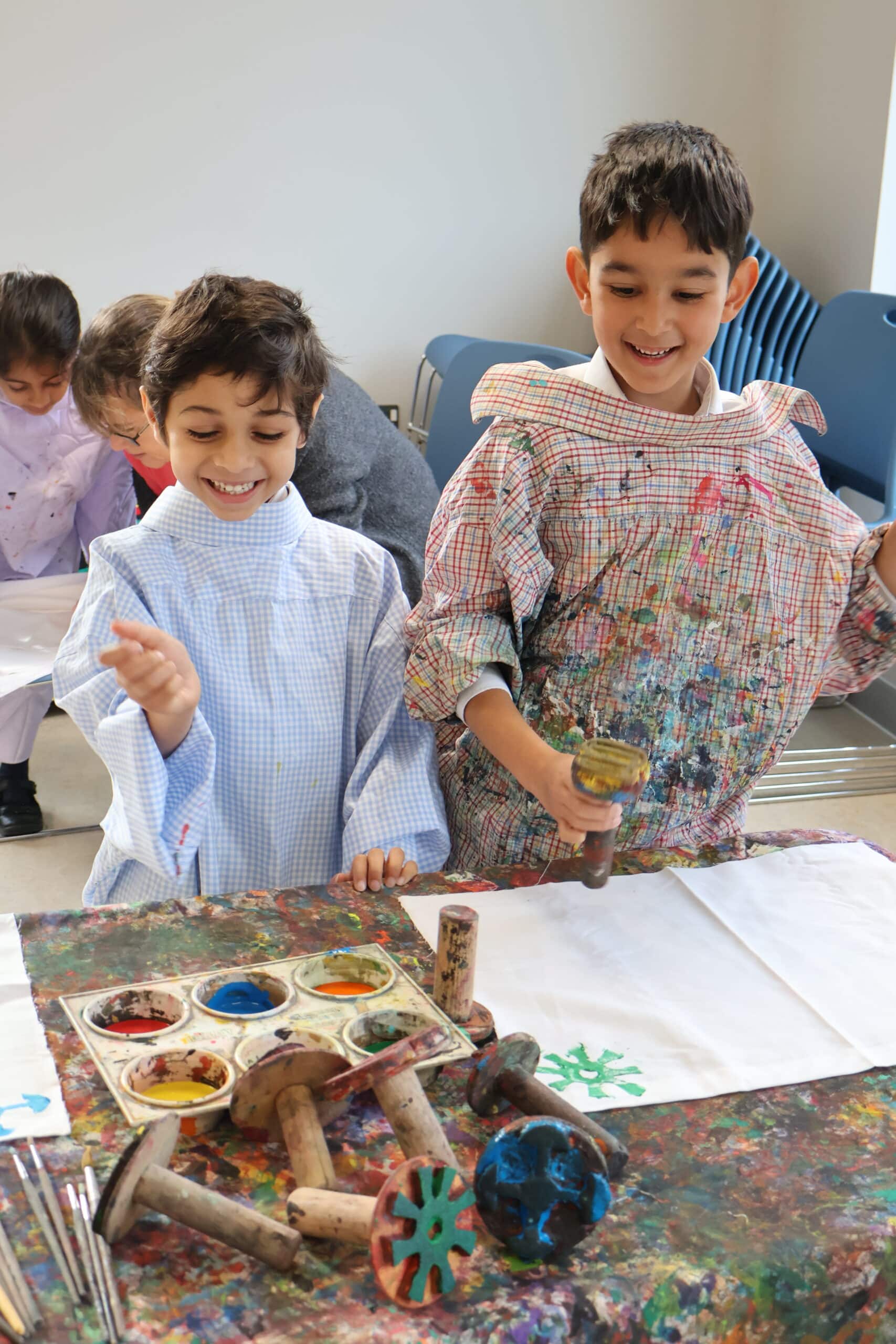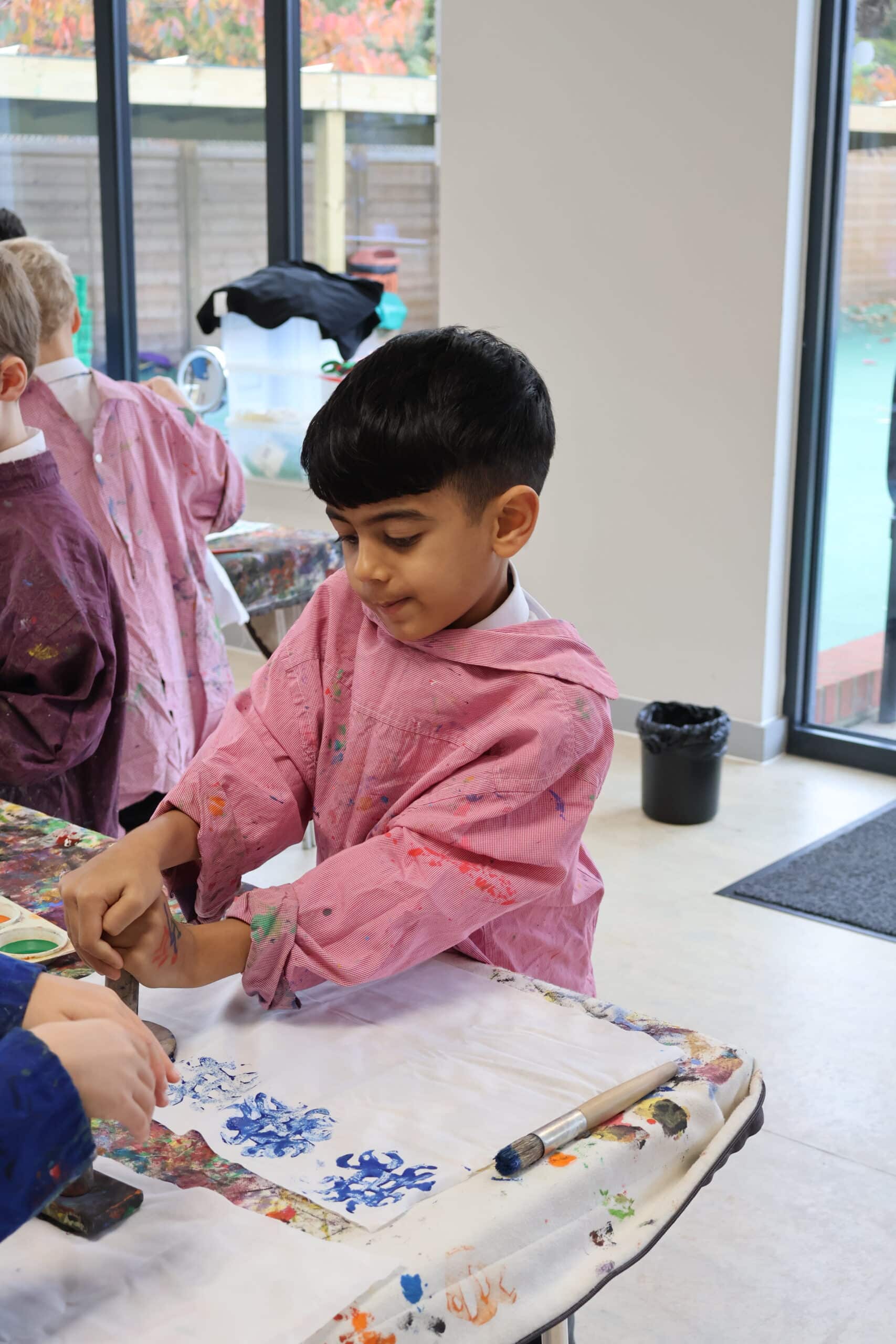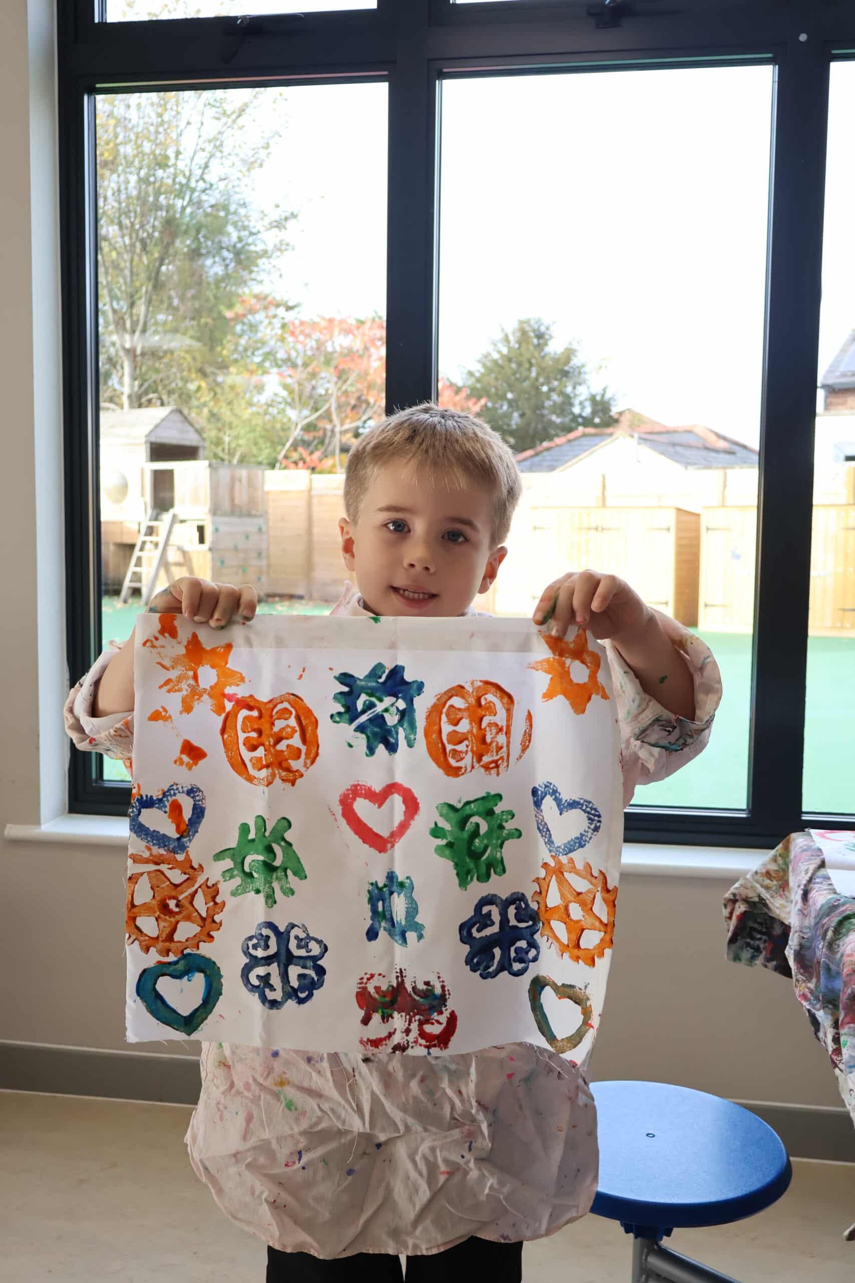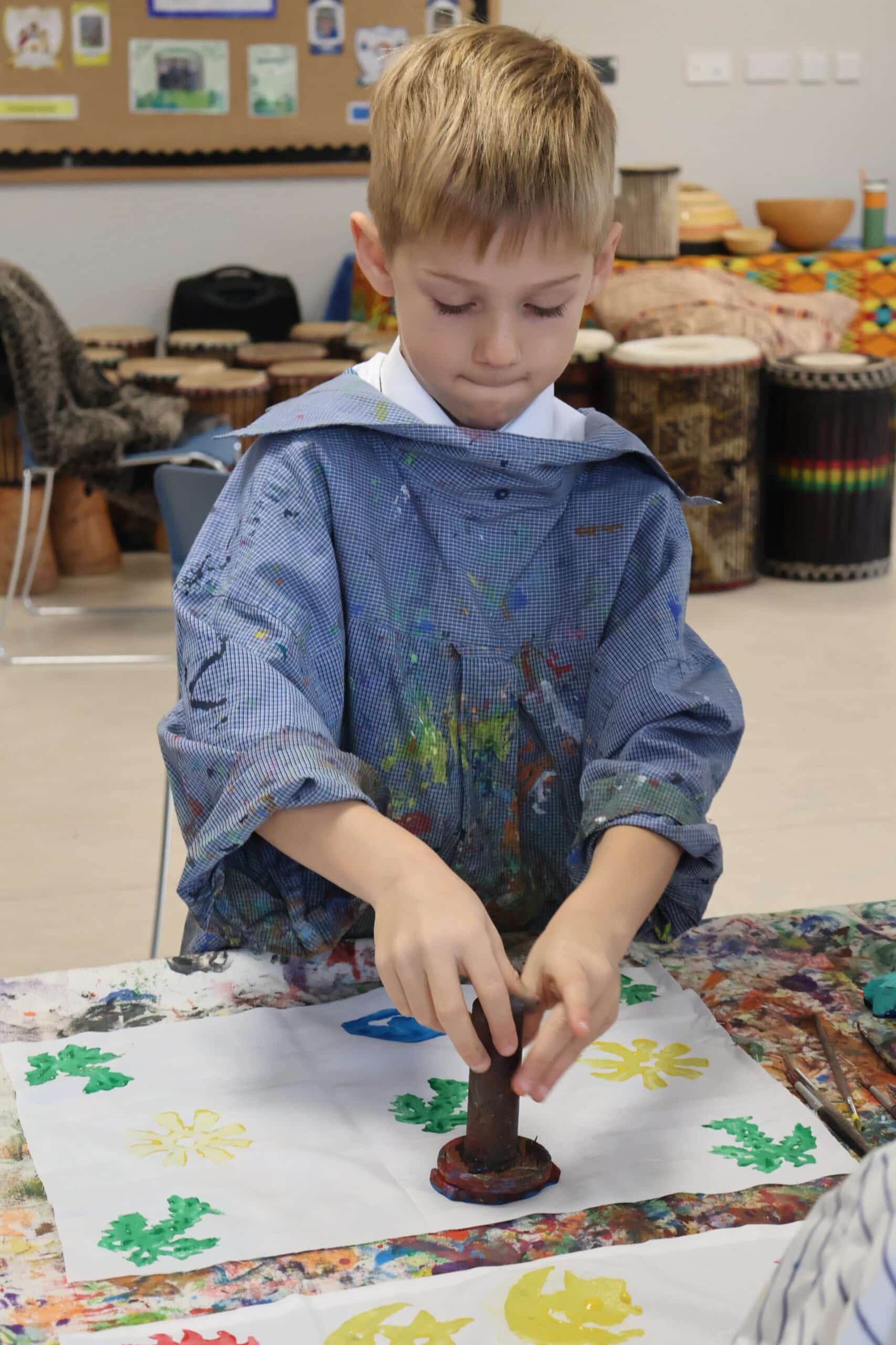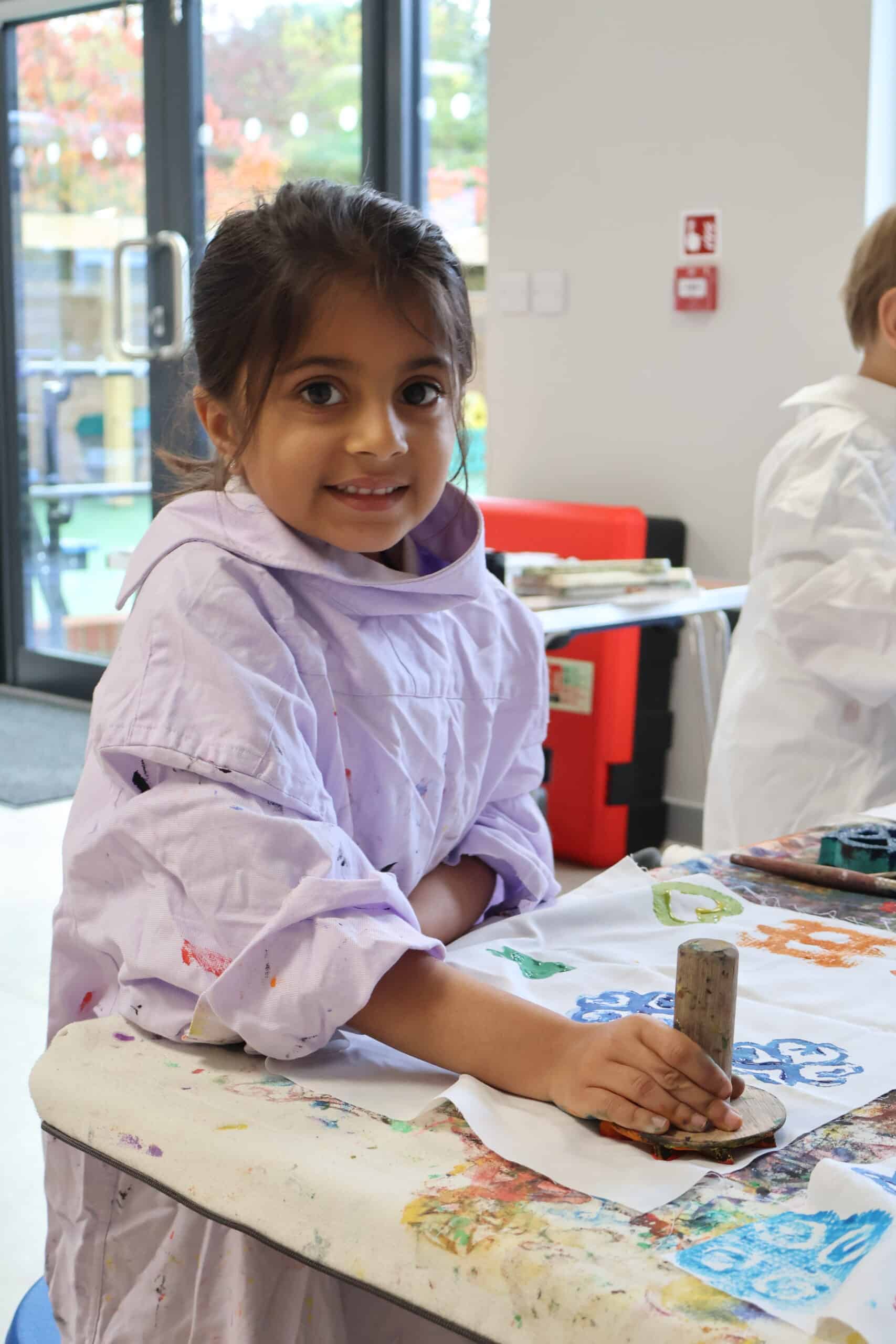The children learnt how to print their own cloth using a selection of symbols in a choice of painted colours, creating a repeat pattern. We now aim to combine all the cloths to create our very own “parchment of unity”.