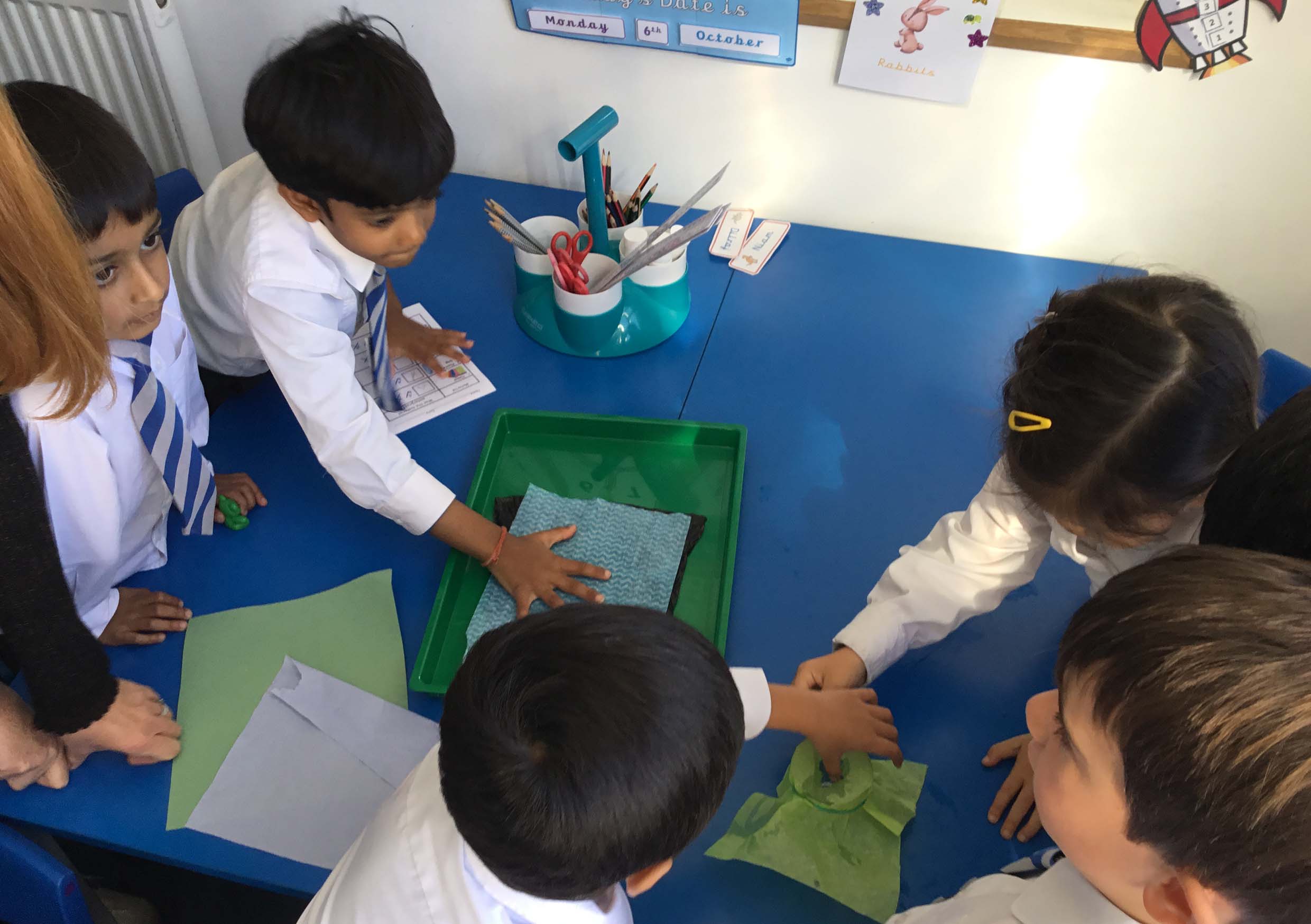 In science, we were thrilled to become young investigators as we tested a variety of materials for their waterproof qualities. Our mission? To find the best material to make an umbrella for Lulu our class lion! We worked together in teams, talked about how to make it a fair test, and thought carefully about the best way to record our results. It was a fantastic opportunity to combine teamwork with scientific thinking!